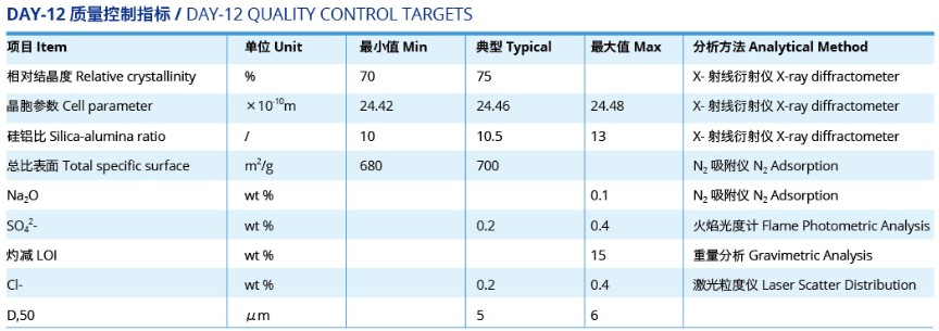 DAY-12低鈉超穩(wěn)高硅Y分子篩,Na2O≤0.1%, SiO2/Al2O3摩爾比≥10。