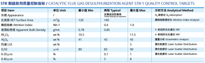 催化煙氣脫硫助劑STR-1, 是一種高效的FCC流化催化裂化裝置再生煙氣硫轉(zhuǎn)移助劑。和FCC流化催化裂化主催化劑混合使用時,可以撲集再生煙氣中的SOx硫化物,使再生煙氣的硫化物降低至國家要求排放標(biāo)準(zhǔn)。脫硫助劑SRT-1有較高的硫轉(zhuǎn)移能力,有較好的耐磨強(qiáng)度及粒度分布,可以降低在FCC主催化劑中的添加比例,而達(dá)到脫除再生煙氣中硫化物的目的。