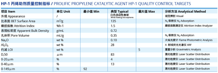 多產丙烯催化助劑HP-1,采用擇形分子篩為主活性組分生產的高活性多產丙烯助劑,和FCC流化催化裂化主催化劑混合使用時,可以提高液化氣和丙烯產率。該催化助劑有較高的擇形催化活性,有較好的耐磨強度及粒度分布。